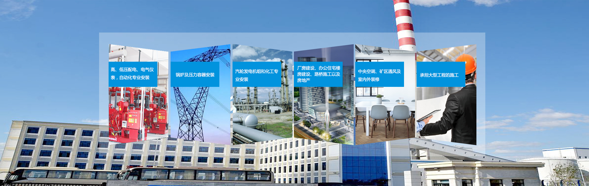 公司以工業(yè)、電力、化工安裝為主 下設(shè)六個大項目部及兩個獨立子公司